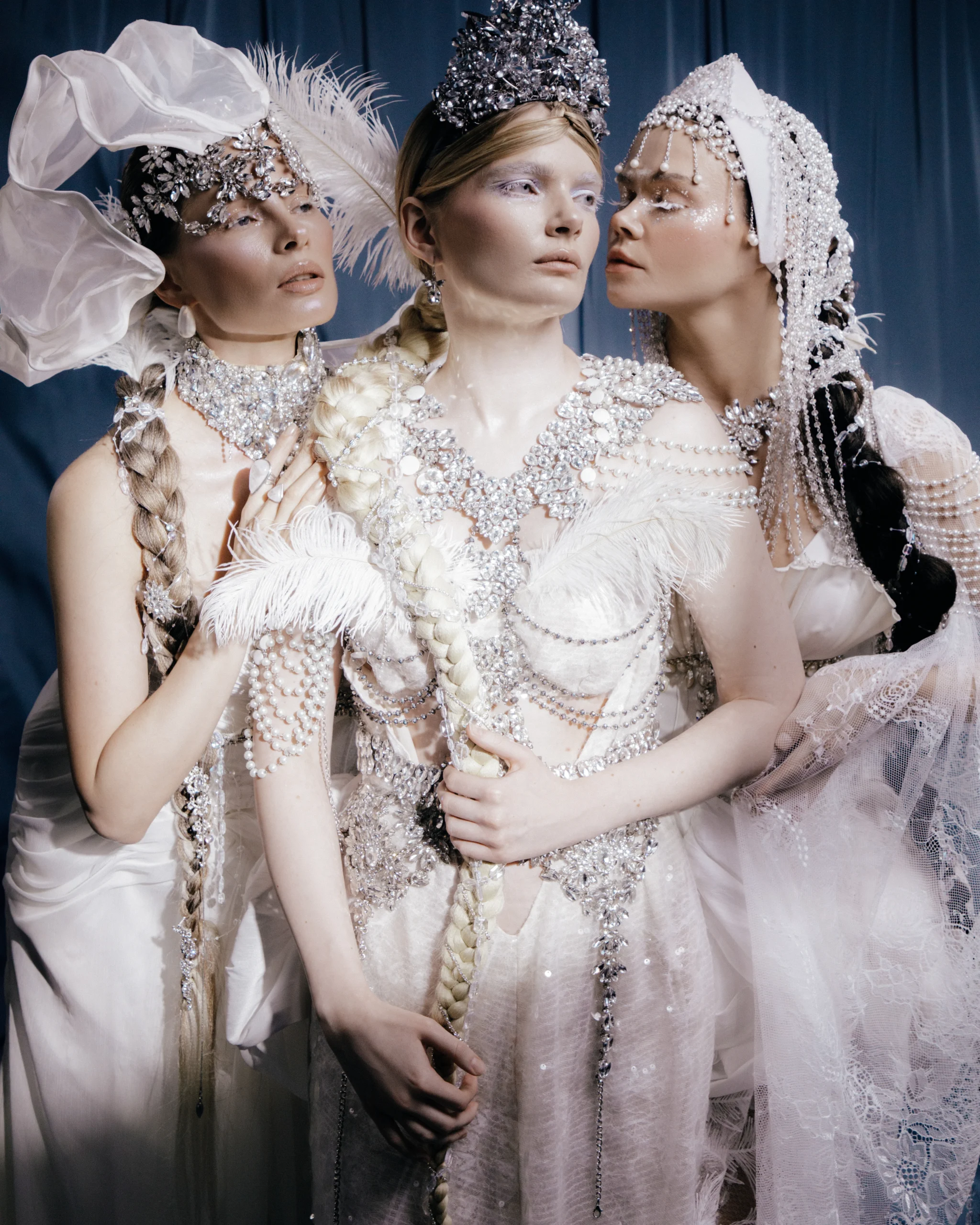 This photoshoot is a contemporary interpretation of a New Year’s fairy tale. Each Snow Maiden heroine carries her own secret of the celebration. Cool silver tones, soft milky hues, and deep blue…
