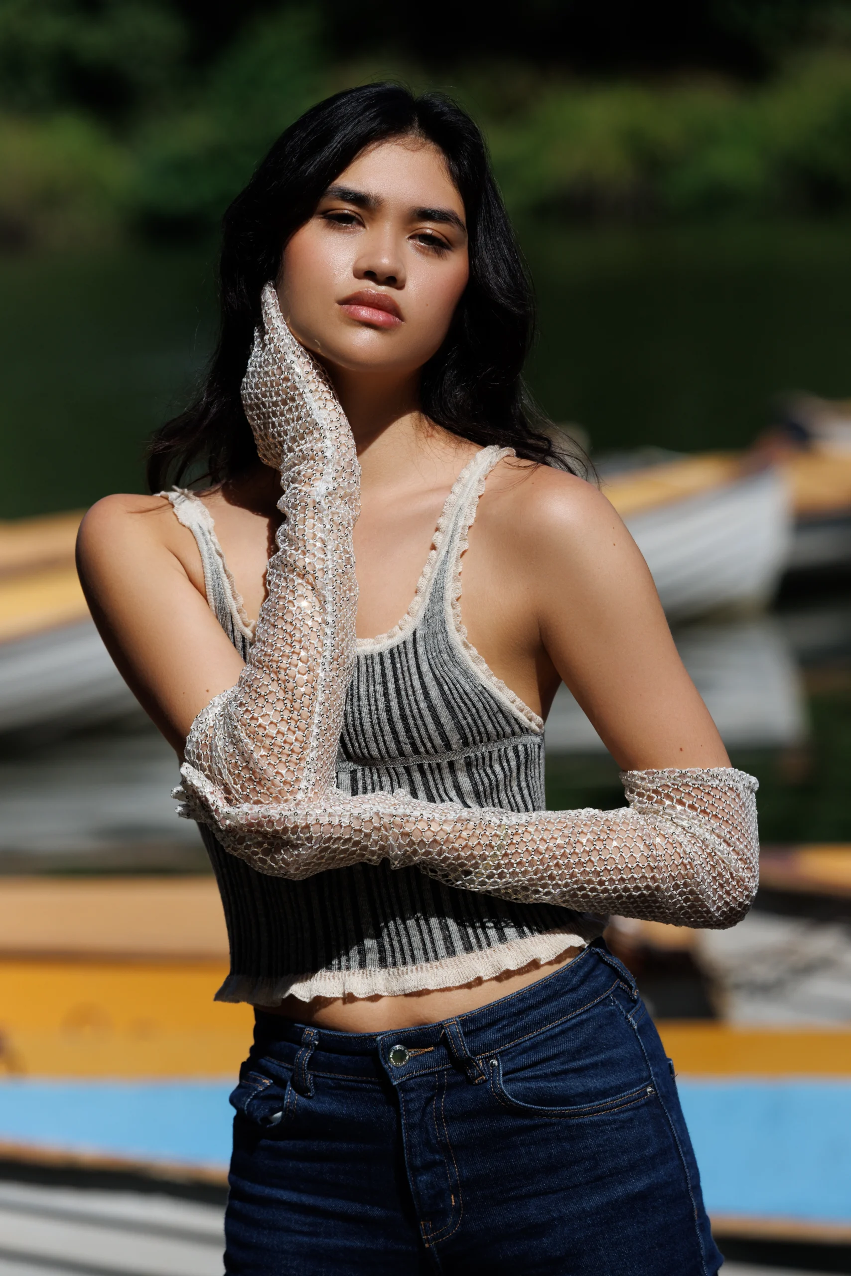 Tank top: CHAMBRE DE FAN; Gloves: SANA OSMANI